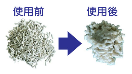 2.水分を吸うと固まりますので、その部分だけを取り除き、新しい猫砂を補充してください。