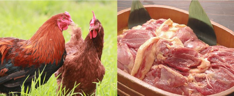 疲労回復効果のあるカルノシン、アンセリン、旨味成分のイノシン酸、アラキドン酸も他の鶏より多く含み、栄養価も高く、「味」「食感」「栄養」と三拍子そろった大変価値の高い地鶏です。