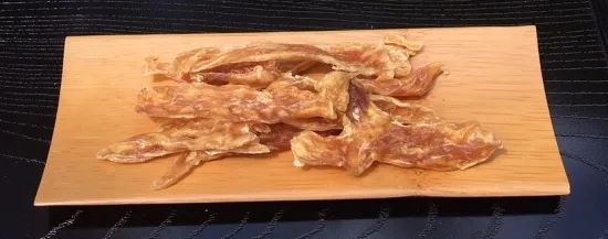 日本3大地鶏のひとつ、比内地鶏のむね肉。低脂肪で濃厚な味わい。日本3大地鶏のひとつ 比内地鶏比内地鶏は名古屋コーチン、薩摩地鶏と並んで3大美味鶏と言われ、自然に近い状態で放し飼いをし、ストレスの少ない環境で育ちます。愛犬のために特に脂肪分が少なく弾力のある雄鶏のみを使用。疲労回復効果のあるカルノシン、アンセリン、旨味成分のイノシン酸、アラキドン酸も他の鶏より多く含み、栄養価も高く、「味」「食感」「栄養」と三拍子そろった大変価値の高い地鶏です。自然に囲まれた加工工場日本のスイスとも呼ばれ、広大な自然に恵まれた東成瀬村に加工工場は有ります。食肉も扱う工場で、厳しい温度管理・衛生管理の下で精肉~加工~乾燥~パッキングまでトータルで行うことで、パートナーのもとに安心・安全・美味しさを届けます。