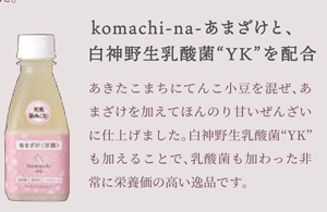 【原材料】 白米(あきたこまち)、水、甘酒、小豆(てんこあずき)、あまざけ調味料YK