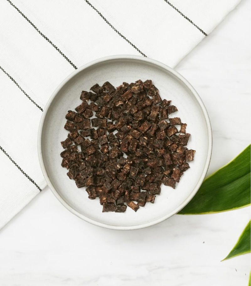 鹿肉をミンチにしてから繋ぎを使わずキューブ状に形成してから乾燥させました。 鹿肉は高タンパク、低脂肪、低カロリー、低アレルギーです。 ちいさなサイズなので小型犬のお出かけのお供や、ご褒美おやつ・トレーニングのおやつ、フードのトッピングとしてもおすすめです。 安心安全な国産・無添加おやつです。
