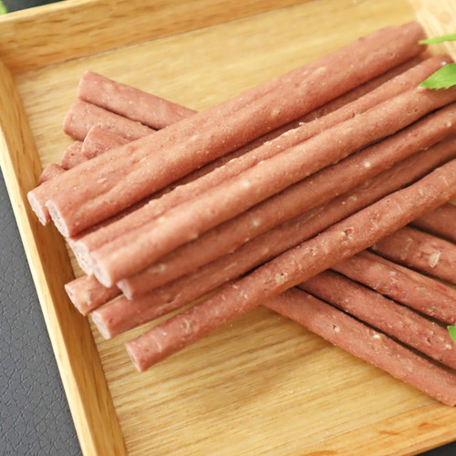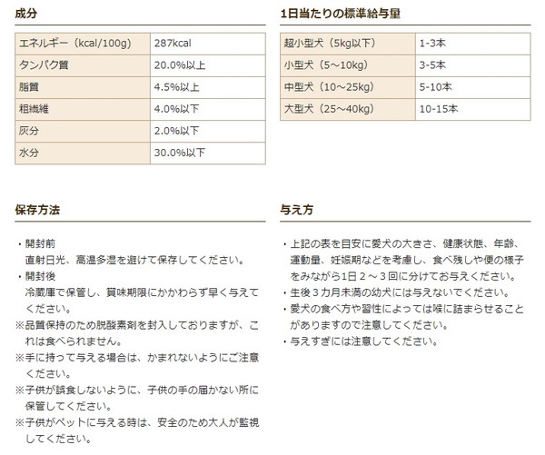 良質な鹿肉を贅沢に使用。食物アレルギーに配慮して、肉類は鹿肉のみを使用。秋田の酒蔵から生まれた爛漫ギャバ260㎎配合。良質な鹿肉をたっぷり使用し、鹿肉の旨みを包み込む独自の製法で仕上げたジャーキー。鹿肉は高たんぱくで低カロリー。鉄分の含有量も多く、生肉100gあたり鉄分を3.4mgも含んでいます。また、エゾ鹿肉はEPAやα-リノレン酸、ビタミンなどを豊富に含んでいます。●EPA…青魚に含まれる不飽和脂肪酸の1つ。「エイコサペンタエン酸」と呼ばれ血液中の悪玉コレステロールを減らし、血液をサラサラにします。また、中性脂肪を下げる働きがあります。●α-リノレン酸… 体の中では作れない、食品から摂らなければいけない必須脂肪酸の1つ。コレステロールを下げる働きがあります。食物アレルギーのあるわんちゃんにも配慮して、肉類は鹿肉のみを使用しています。牛肉や鶏肉のアレルギーに悩むわんちゃんにもおすすめです。1袋に爛漫ギャバ260㎎(γ-アミノ酪酸10.5mg)を配合。「爛漫ギャバ」とは秋田の酒蔵が生んだ機能性米ぬか素材です。ギャバには体内で神経伝達物質として働き、ストレスを和らげて脳の興奮を鎮める作用があります。また、抗酸化作用があるフィチン酸が含まれていて、脂質代謝改善作用もあります。