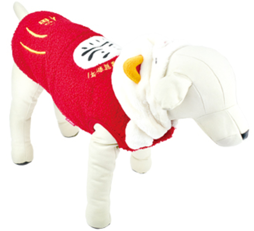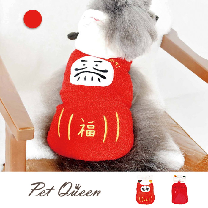 おめでたいだるまさんと招き猫がくっついた! かわいすぎるウェア。 首元がマジックテープなので着脱もらくらく♪ おめでたい日にぴったり! わんちゃんのキュートな姿に癒される一枚。