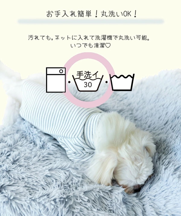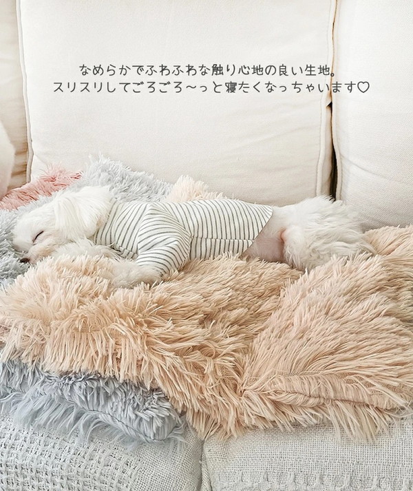 ★まるごと洗えて清潔☆優しいくすみカラーで人気のふわふわブランケット★インテリアを邪魔しないシンプルなデザイン!ふわふわのファー生地は肌触りが滑らかで寝心地抜群!愛犬&愛猫もぐっすり安心して眠ることができます。優しいくすみカラーの色合いも落ち着いていて、とってもおしゃれ!ネットに入れて洗濯機で丸ごと洗えるので、清潔に使えてとっても便利!飼い主さんの負担も軽減♪※色の濃い商品は洗濯すると色落ちする場合があります。