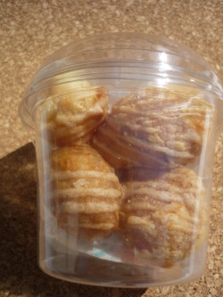 プチサイズのわんちゃん用シューです。 ほんのりピンク色のいちごのソースをトッピングしています。 可愛いカップに4個入りです。