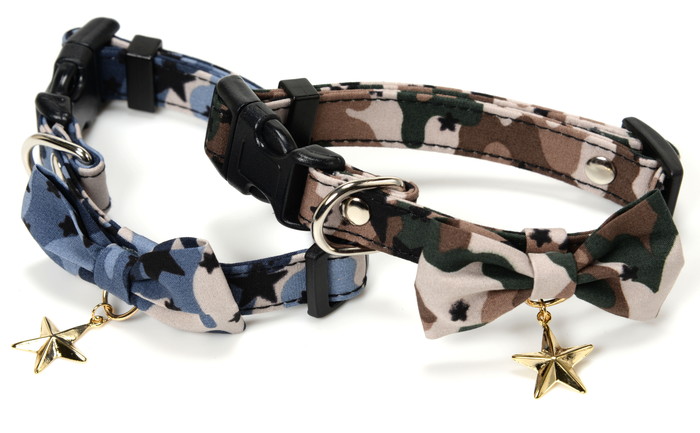 迷彩柄と星柄が一緒にプリントされているカジュアルな印象のいぬ用カラー