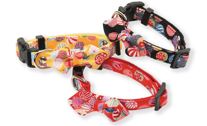 色鮮やかなちりめん金彩で、紙風船柄の首輪。