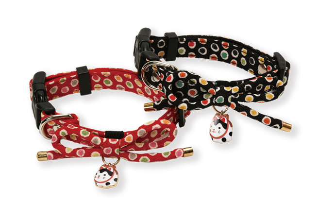 リボンには愛嬌ある”こまちゃん”が付いていて和風が楽しめる おしゃれ首輪です。