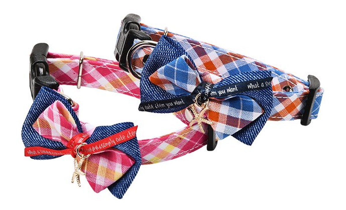 デニムプリントとチェック柄のリボンがCUTEないぬ用カラー