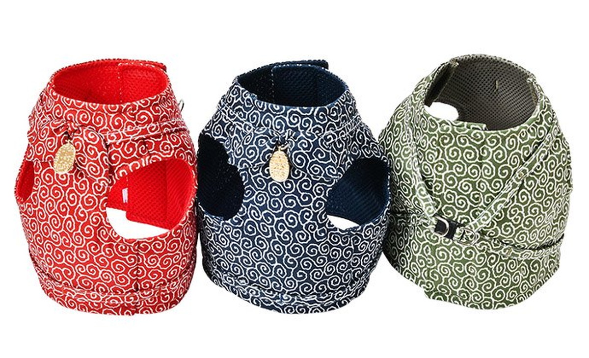 一番人気の唐草、ねこ用ハーネス! 簡単に着脱でき、背中のマジックテープでサイズ調整が可能です。 裏地にはメッシュ素材を使用しています。
