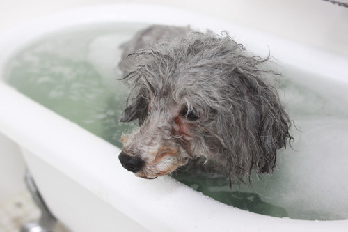 被毛をもみ込みながら浸かるようにすると効果的です。