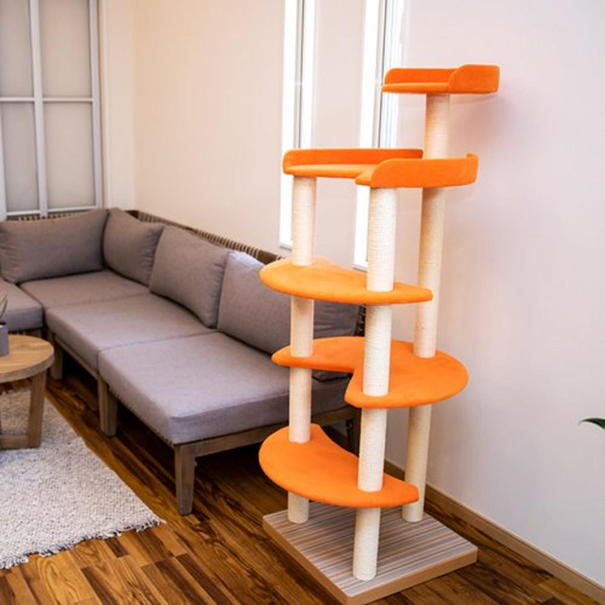 シンプルながら、丸く大きなステップで遊び方も自由なキャットタワー。