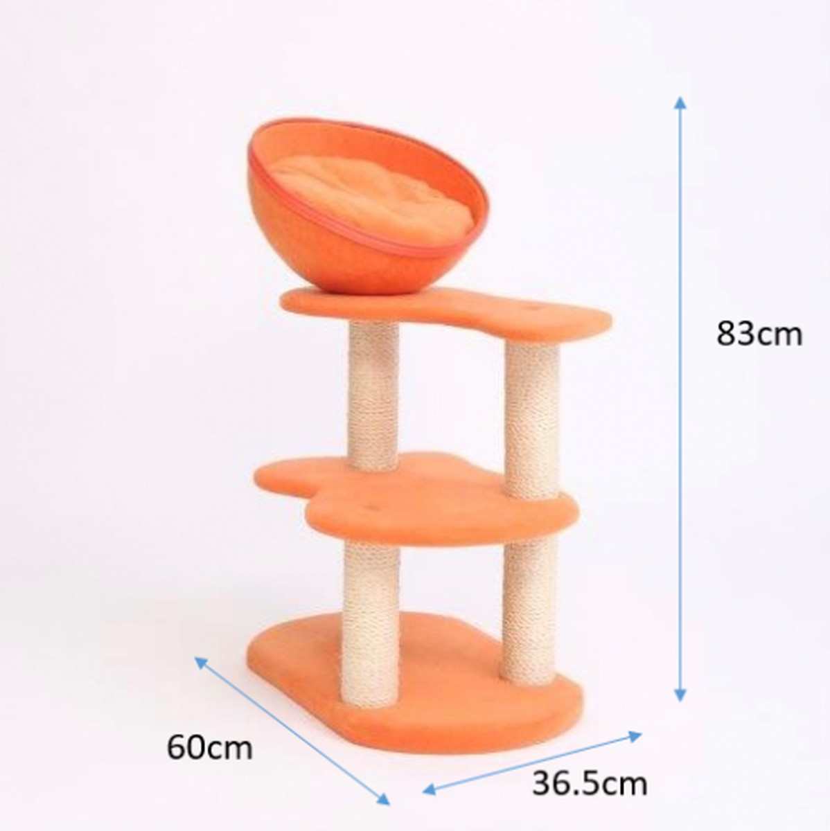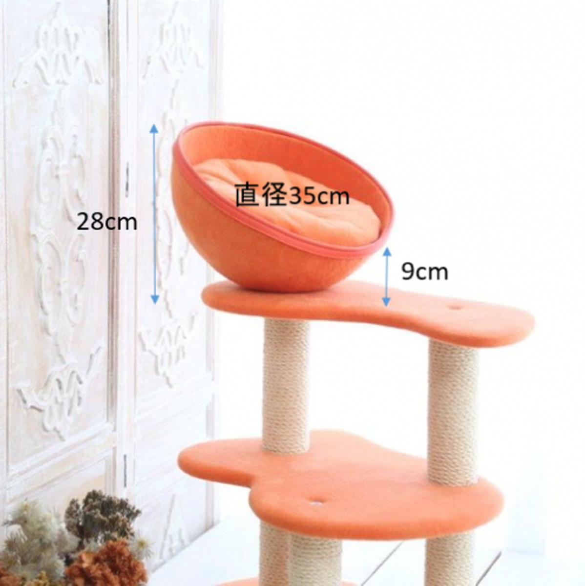 一番上のラウンドベッドは、繊維強化プラスチックで出来ており、軽く耐久性に優れるていることが特徴です。 猫ちゃんが好きなふかふかクッションも付けました。 小さな猫ちゃんや足腰が弱ってきた高齢の猫ちゃんも安心して使うことができます。