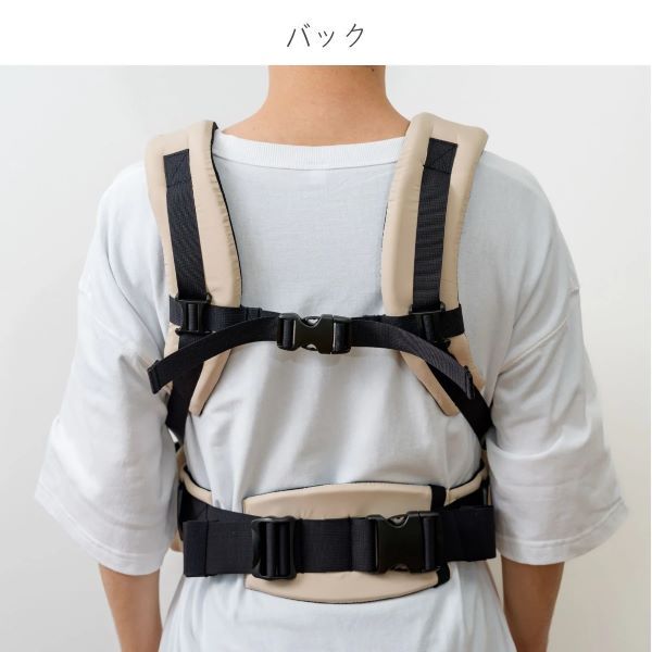 幅広のショルダーベルトとウエストベルトでしっかりホールド。