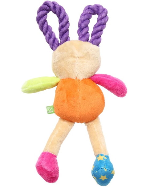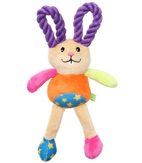 「バブー ステラ」は、目に鮮やかなビタミンカラーのうさぎ型ぬいぐるみにスクウィーカーが入っています。