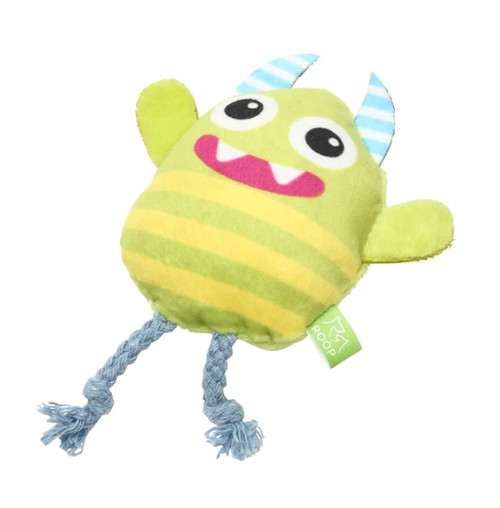 「ループ スモル」は、手のひらサイズの小さくて可愛いぬいぐるみ系おもちゃです。「カラフルモンスター」は、その名の通り色とりどりのユーモアあふれるオバケのシリーズです。「カラフルモンスター ライムグリーン」は、シマシマの角と紐でできた足をもったオバケです。ボディーにはスクウィーカーが入っています。【注意事項】・本製品は犬用おもちゃです。本来の用途以外には使用しないでください。・誤飲やいたずらを防ぐため飼い主様の目の届く場所で使用し、壊れかけた場合は直ちに使用を中止し新しいものに交換してください。・飲み込んでも害のない素材を使用していますが、万一誤飲した時は獣医師に相談してください。・おもちゃを投げて遊ぶときは、周囲の安全を十分に確認してください。・幼児やペットの手の届かない場所に保管してください。