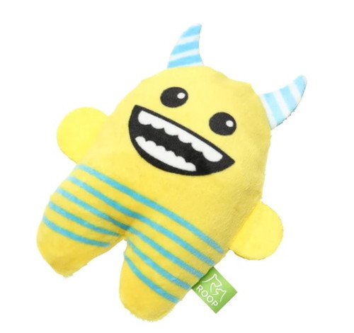 「ループ スモル」は、手のひらサイズの小さくて可愛いぬいぐるみ系おもちゃです。「カラフルモンスター」は、その名の通り色とりどりのユーモアあふれるオバケのシリーズです。「カラフルモンスター イエロー」は、シマシマの角とパンツが可愛いオバケです。ボディーにはスクウィーカーが入っています。【注意事項】・本製品は犬用おもちゃです。本来の用途以外には使用しないでください。・誤飲やいたずらを防ぐため飼い主様の目の届く場所で使用し、壊れかけた場合は直ちに使用を中止し新しいものに交換してください。・飲み込んでも害のない素材を使用していますが、万一誤飲した時は獣医師に相談してください。・おもちゃを投げて遊ぶときは、周囲の安全を十分に確認してください。・幼児やペットの手の届かない場所に保管してください。