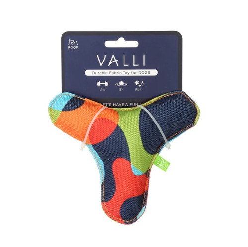 高密度に織られた丈夫なナイロンで作った、ブーメラン型の犬用おもちゃです。
