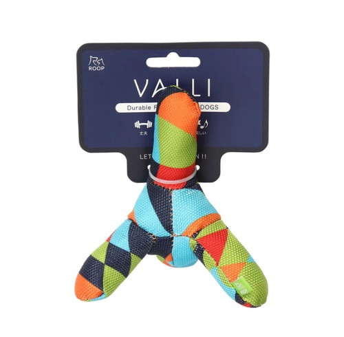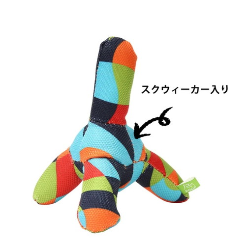 高密度に織られた丈夫なナイロンで作った、手のひらサイズのテトラポット型の犬用おもちゃです。プラスチック製よりも口や鼻を傷つけにくく、安全です。中央にスクウィーカーが入っていて、キュッキュッと音も鳴り、ワンちゃんの本能を刺激します。室内・屋外はもちろん、水辺でも毎日楽しく遊ぶことのできるおもちゃです。