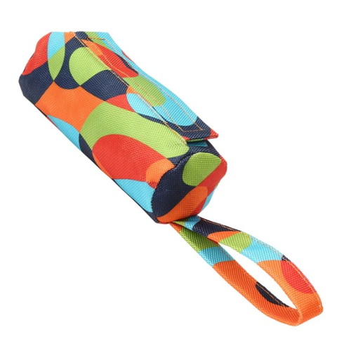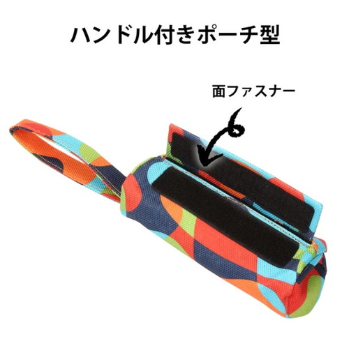 高密度に織られた丈夫なナイロンで作った、ポーチ型犬用おもちゃです。