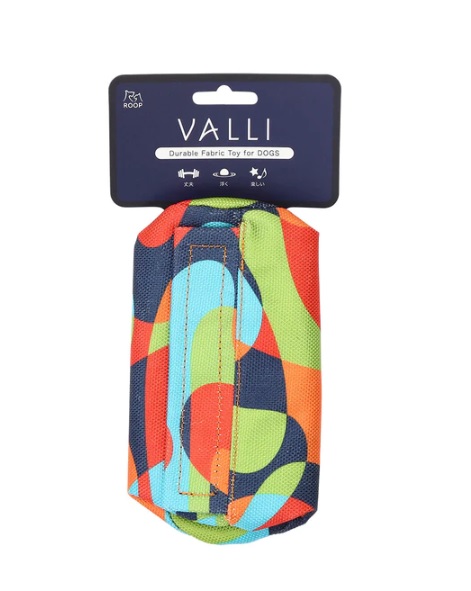 ROOP VALLI(ループ ヴァリー)に使われている布地は、一般的なナイロン生地(420デニール)よりもやや厚めの600デニールと、高密度の1680デニールの非常に高い強度をもったナイロンです。これらを2枚重ねて縫製することにより、よりタフな作りになっています。丈夫でありながら、軽くて水に浮くので、水遊びにも適しています。いろいろな遊び方ができますので、しつけや知育遊びにもお役立てください。
