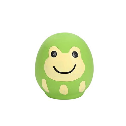 「プーピーズ かえる」は、緑のだるま型ボディーがキュートなかえるの形をしたゴムおもちゃです。