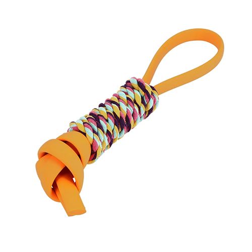 「ノッティー タグ」は、適度な弾力かつ丈夫なTPRゴムの本体に、カラフルなロープをしっかりと巻き付けてあります。