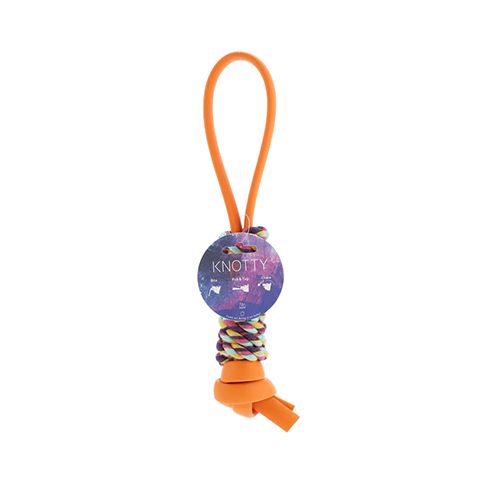 「ノッティー」は、ワンちゃんが大好きなロープおもちゃシリーズです。色鮮やかなビタミンカラーのロープとゴムが、遊ぶ前からワクワク感を盛り上げてくれます。「ノッティー タグ」は、適度な弾力かつ丈夫なTPRゴムの本体に、カラフルなロープをしっかりと巻き付けてあります。丈夫な持ち手が作られているので、愛犬と一緒に楽しめます。噛む・引っ張る・追いかける等、室内外どこでも楽しく遊ぶことができ、ストレス解消やデンタルケアにもおすすめです。