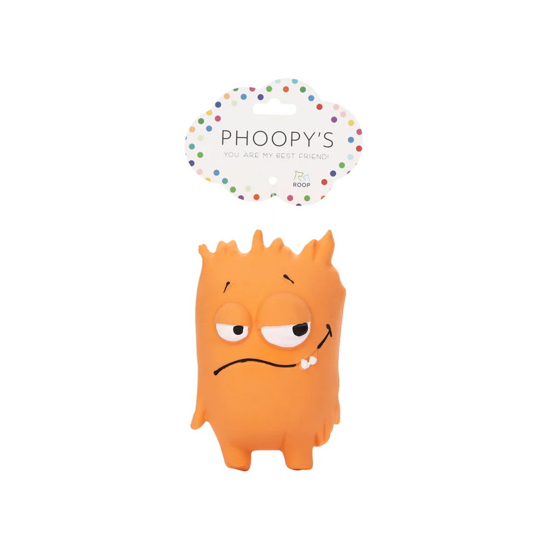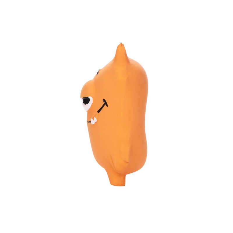 「プーピーズ パンキー オレンジ」は、ゆらめく炎のようなフォルムで、ニヒルなスマイルが印象的なモンスターのゴムおもちゃです。