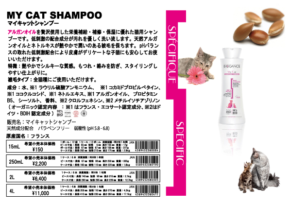 アルガンオイルを贅沢に使用した栄養補給・補修・保湿に優れた猫用シャンプーです。