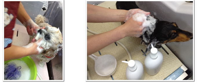 泡は地肌にすり込み、地肌を優しく丁寧にマッサージするように、泡の様子を見ながら洗浄します。