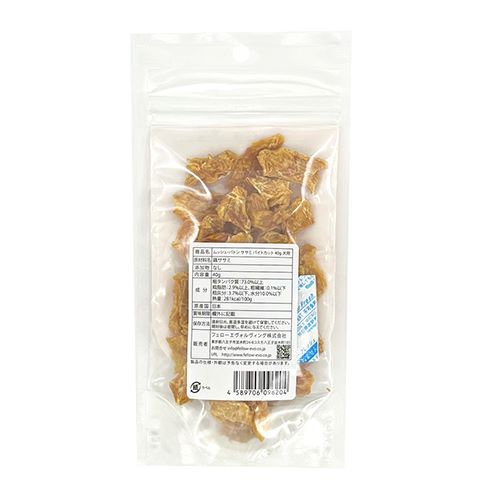 粗タンパク質:73.0%以上、粗脂肪:2.9%以上、粗繊維:0.1%以下、粗灰分:3.7%以下、水分:10.0%以下、281kcal/100g