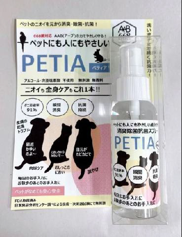 701の菌に対応し、アルコール、次亜塩素酸水を使わない次世代型の除菌・抗菌・消臭剤。有害物質ゼロでペットにも人にも優しく、外出時の携帯用としても便利です。洗い流すまで効果は持続。使用方法涙焼けケア、お散歩後の肉球ケア、排泄後のおしりケアにはコットンに噴霧し、優しく拭いてください。毎日のブラッシングケアは、ペットに直接噴霧するか、ブラシに噴霧してブラッシングしてください。ゲージ、ペット用おもちゃ、クッション類のリネンケア、その他の用品には直接噴霧して自然乾燥してください。(より一層抗菌力が高まります)使用上の注意飲料ではありませんので飲ませないでください。直射日光を避けて保管してください。毎日よく振ってからご使用ください。ペット、乳幼児の届かないところで保管してください。稀に多孔質成分が結晶化し容器内に沈殿したり、スプレー口に付着する場合がありますが製品上には問題ございません。