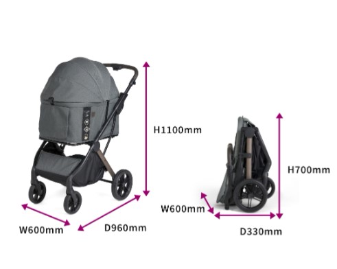 1秒で超コンパクトに自動収納できる中型犬・多頭向けのキャビン一体型ペットカートです。