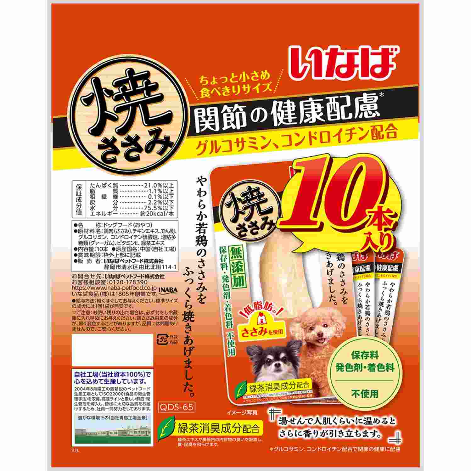 ふっくらと柔らかな若鶏のささみを直火でゆっくり香ばしく焼き上げました。軽くほぐして与えると、香りも引き立ち、わんちゃんが喜んで食べます。大容量10本入り。ビタミンE配合。保存料、発色剤、着色料不使用。