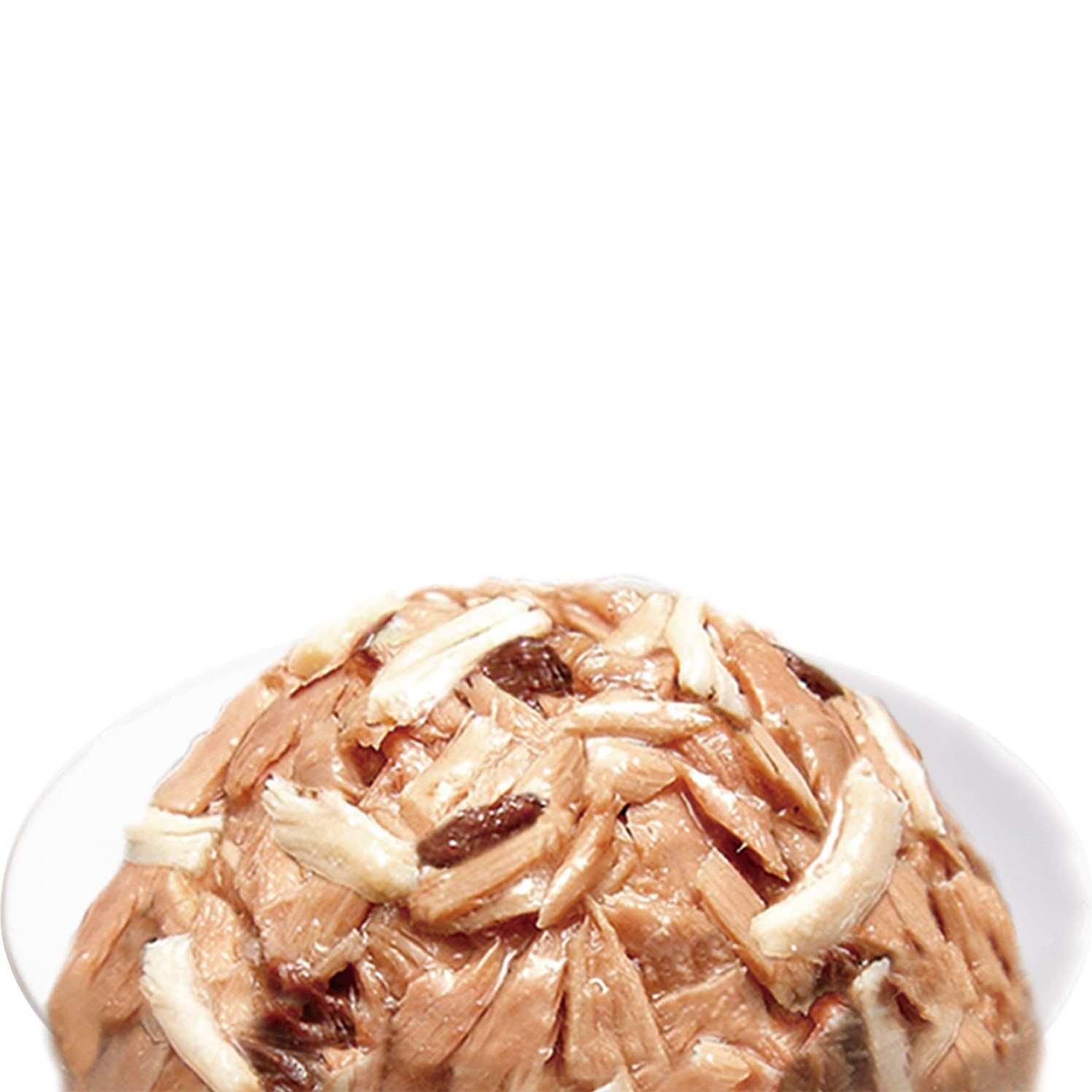 まぐろとかつおのフレークを、風味豊かなお魚エキスで仕上げました。猫ちゃんの喜ぶ素材をトッピング。3缶パックで多頭飼いの家庭でも便利です。