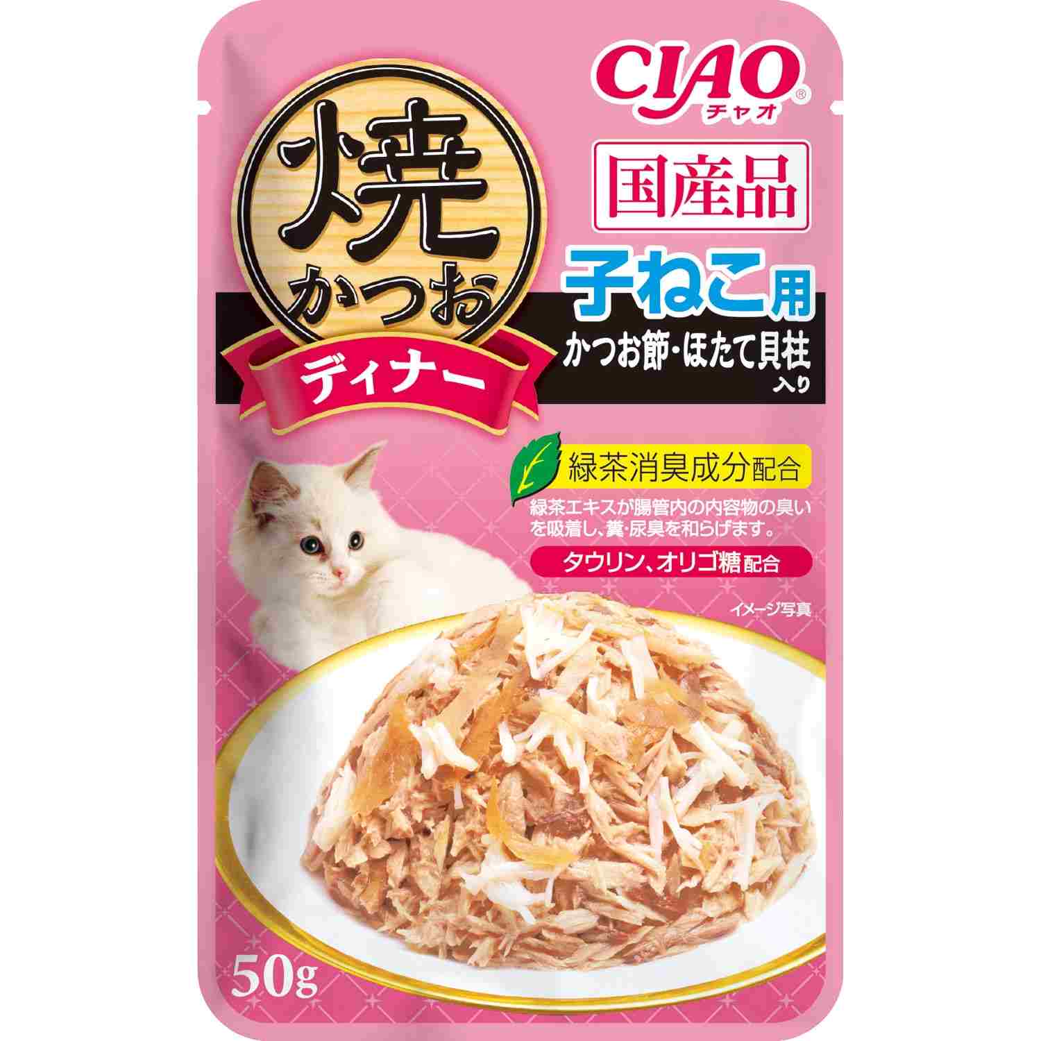 多頭飼いの家庭でも安心のファミリーパック。焼かつおディナーの人気フレーバーを組み合わせたバラエティパック。猫ちゃんの気分に合わせて2種類の味が楽しめます。(子猫用は1種類のみ)国産品。