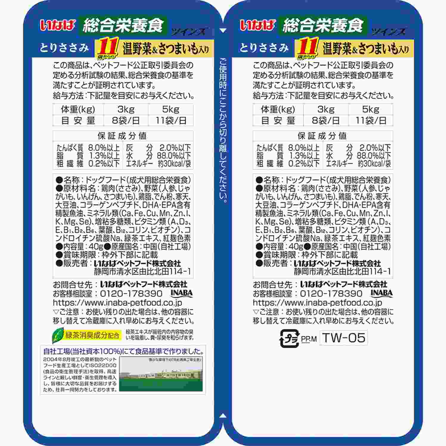 ツインズ 11歳からのとりささみ 温野菜&さつまいも入り 80g(40g×2)