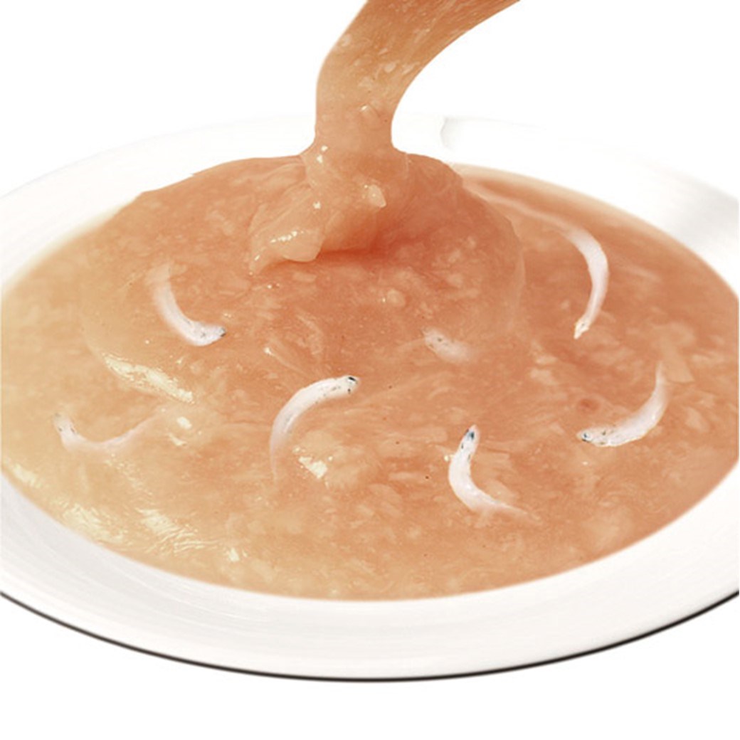 2つに分けて与えることができるツインタイプのチューブ型レトルトパウチを使用。お魚がベースのペーストタイプ。そのままでも、トッピングとして与えても喜んで食べます。食べきりサイズで使いやすい30g×2袋。タイ産。