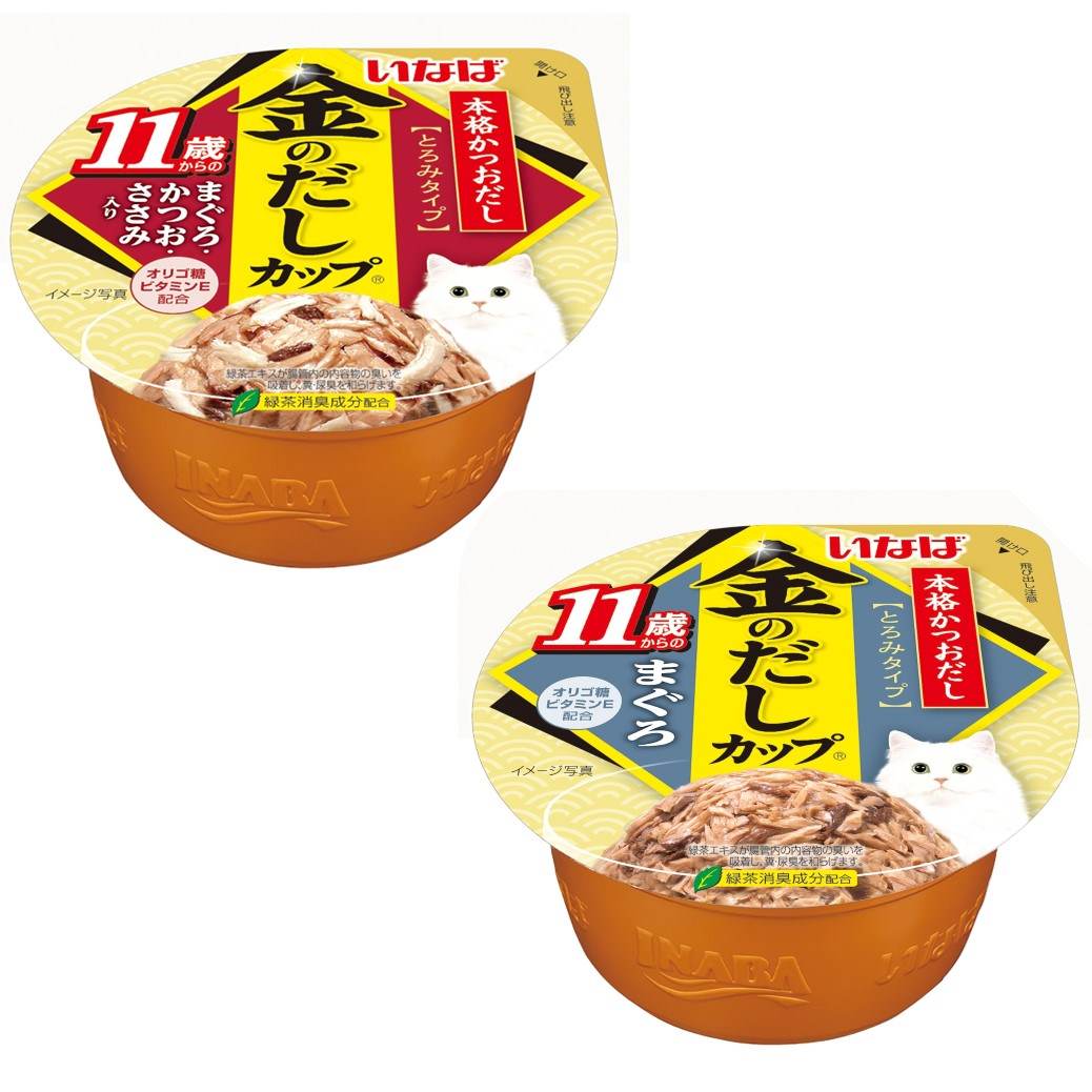 本格かつおだしを加えた、風味豊かなとろみタイプ。かつおやまぐろの丸ごとフレークをベースに愛猫の喜ぶ素材をトッピング。高齢猫用に細かめフレークに仕上げ、オリゴ糖を配合しました。3種類の味が入った便利な12個パックです。タウリン、ビタミンE配合。着色料不使用。