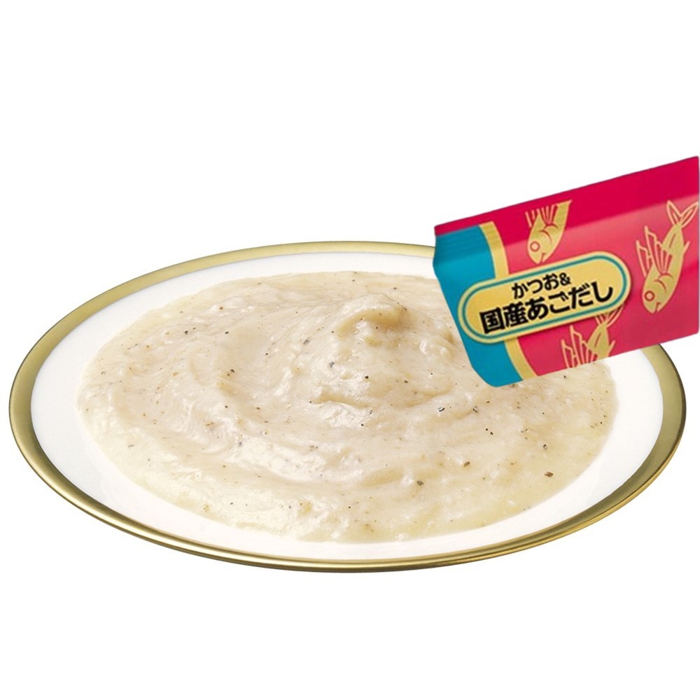 【かつお&国産あごだし】かつお、焼あご、あごだし、かつお節エキス、糖類、タンパク加水分解物、植物性油脂、増粘安定剤、ミネラル類、調味料、ビタミンE、紅麹色素、緑茶エキス