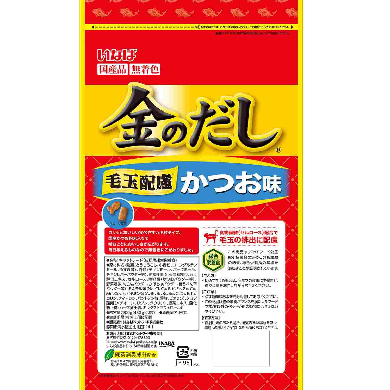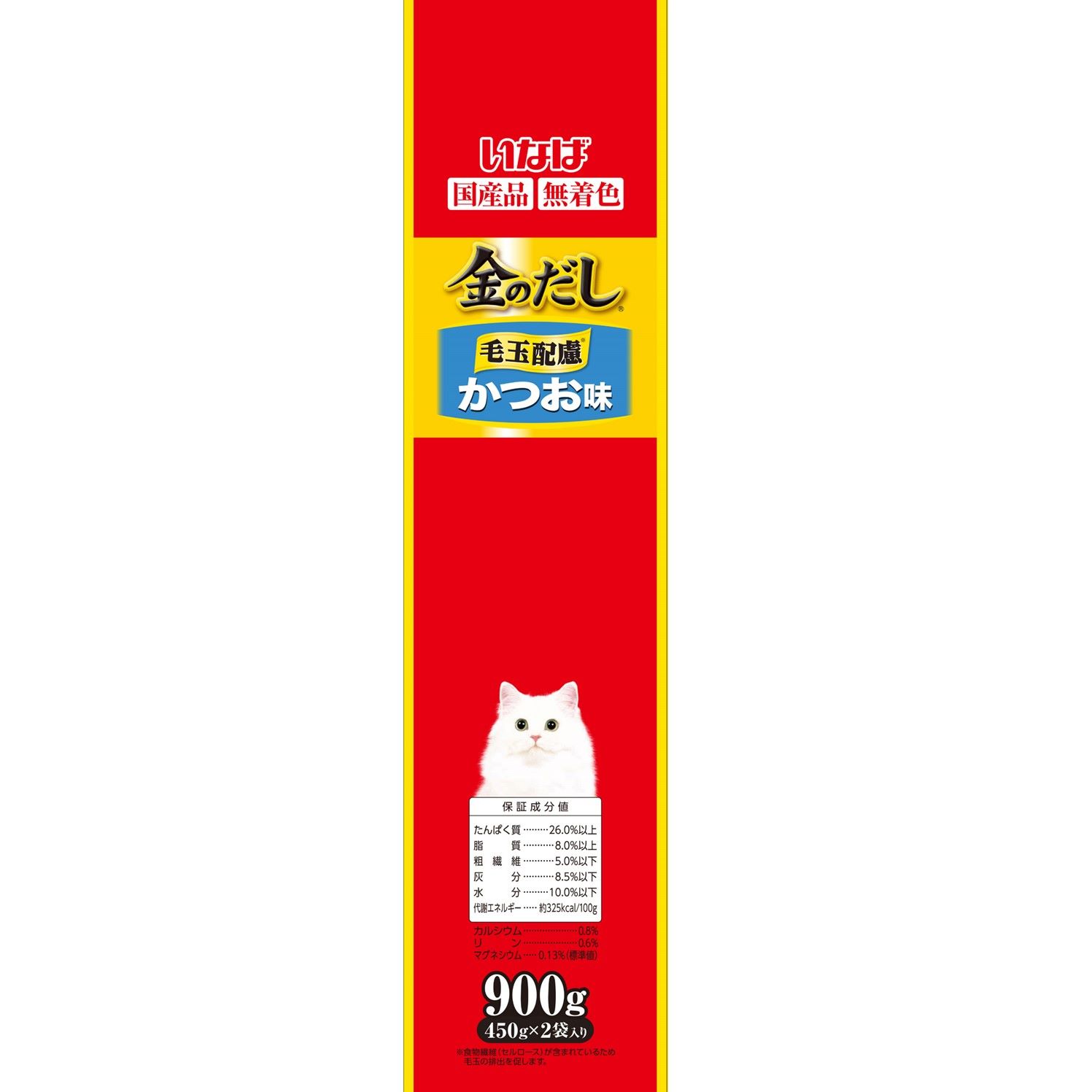 カリッとおいしい食べやすい小粒タイプ。国産まぐろ節粉末入りで、噛むごとにおいしさが広がります。食物繊維(セルロース)配合で毛玉の排出に配慮。450g×2袋入りの便利な小分けパック。いつでも開けたて・新鮮のおいしさを愛猫に。着色料不使用。