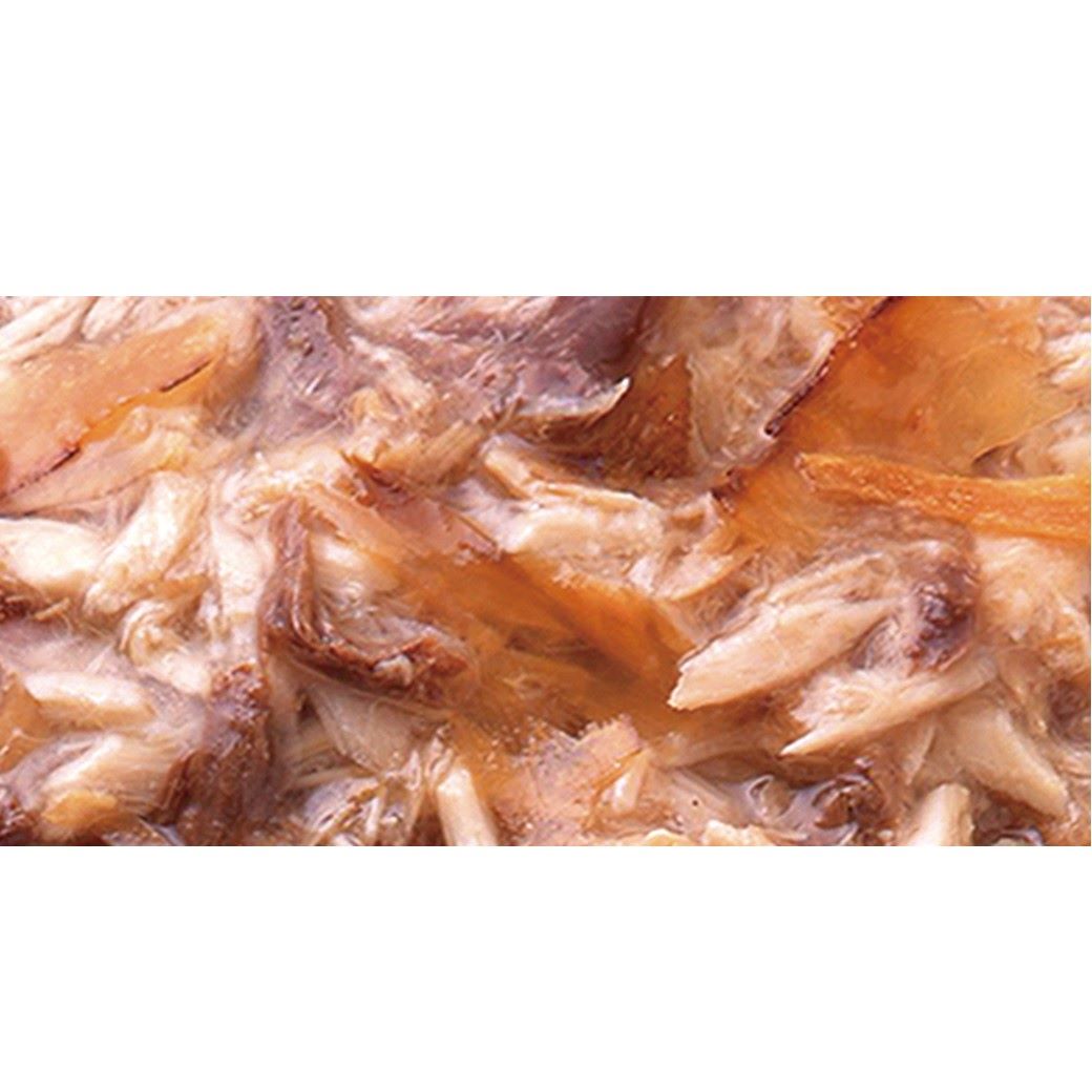 まぐろの細かめフレークに人気の素材を加え、ゼリーでコーティング。風味豊かなかつおだし仕立て。タウリン配合。高齢猫用にオリゴ糖を配合。着色料不使用。国産品。
