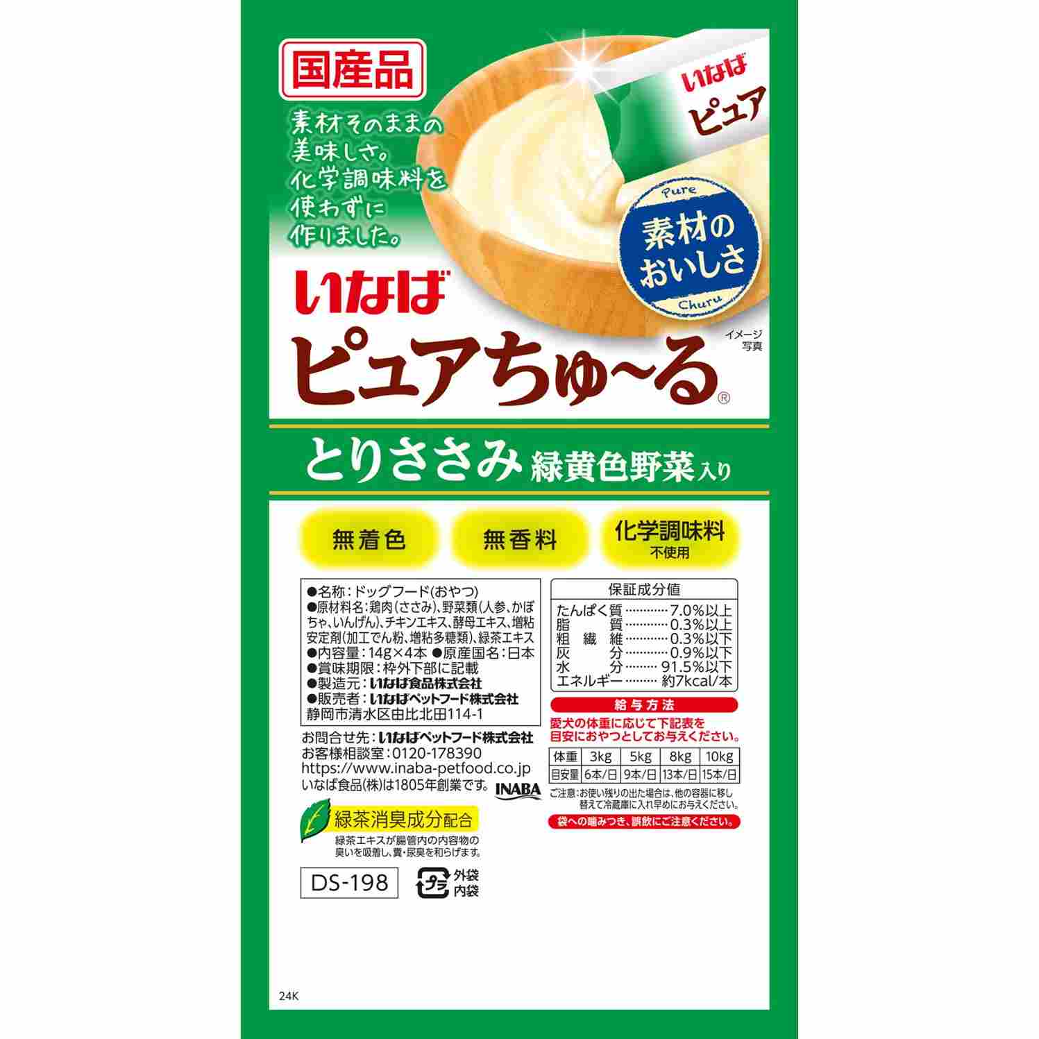 ピュアちゅーる とりささみ 緑黄色野菜入り 14g×4本