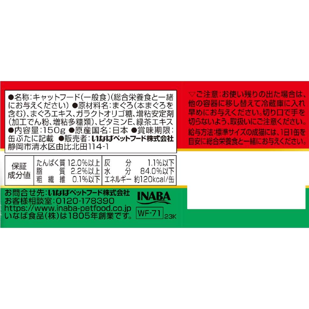 本まぐろを使用したプレミアムタイプのウェットフード。血合肉の一部に本まぐろを使用し、贅沢に仕上げました。おいしさを引き立てるまぐろやほたてのエキスを使用。グルメなねこちゃんも大満足の美味しさです。ビタミンE、オリゴ糖配合。緑茶消臭成分配合。