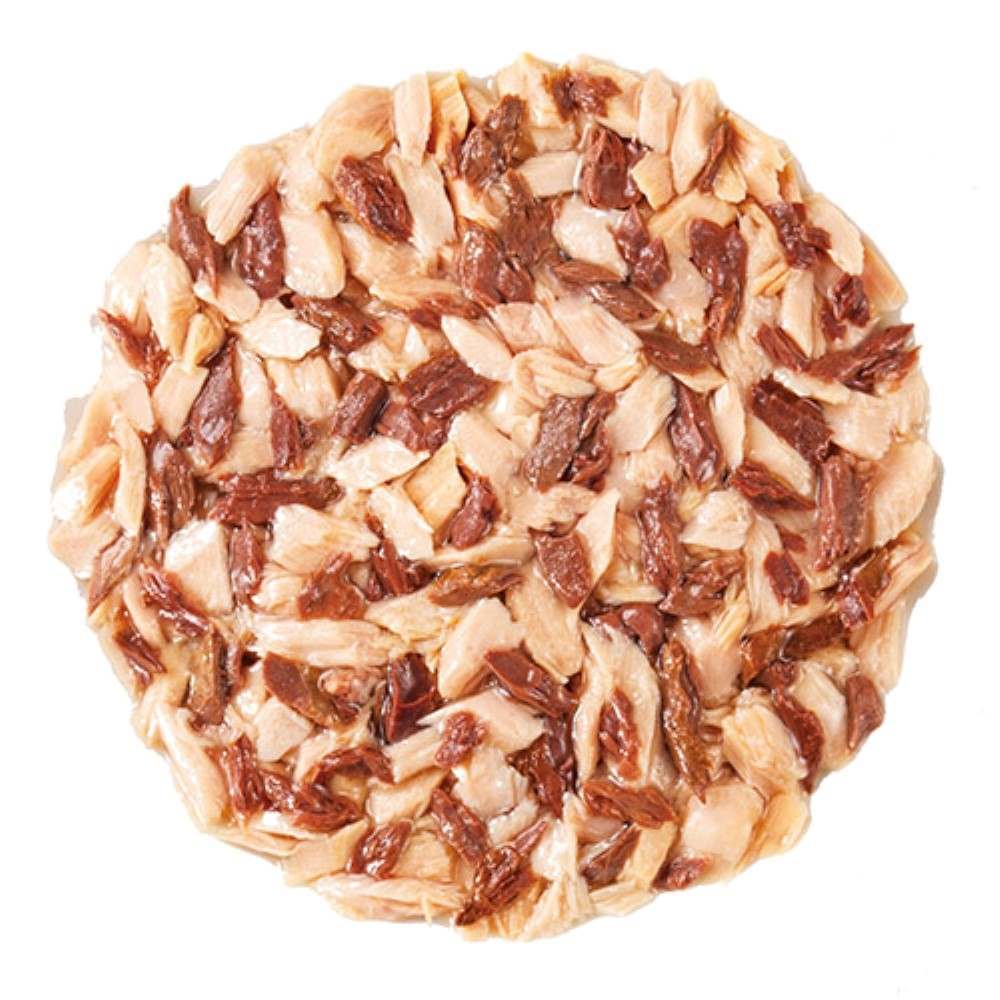 本まぐろを使用したプレミアムタイプのウェットフード。血合肉の一部に本まぐろを使用しました。おいしさを引き立てるまぐろやほたてのエキスを使用。グルメなねこちゃんも大満足の美味しさです。ビタミンE、オリゴ糖配合。緑茶消臭成分配合。