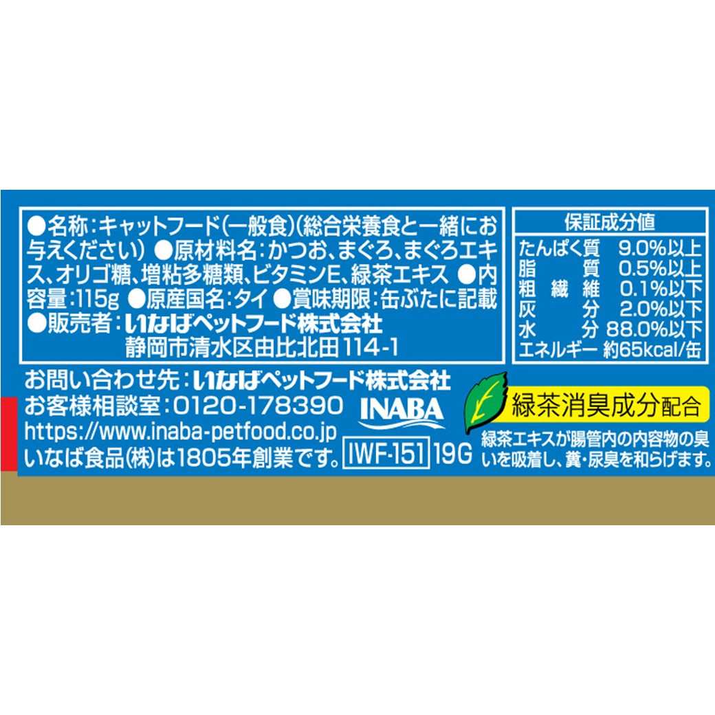 かつお、まぐろ、まぐろエキス、オリゴ糖、増粘多糖類、ビタミンE、緑茶エキス