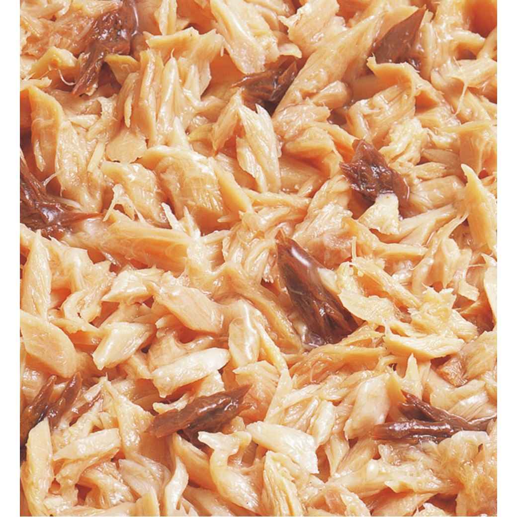 まぐろとかつおの丸ごとフレークをゼリーで包みました。まぐろエキス、オリゴ糖配合。細かめフレークはビタミンE強化(当社成猫用比1.5倍)で、高齢猫の健康にも配慮。着色料不使用。国産品。