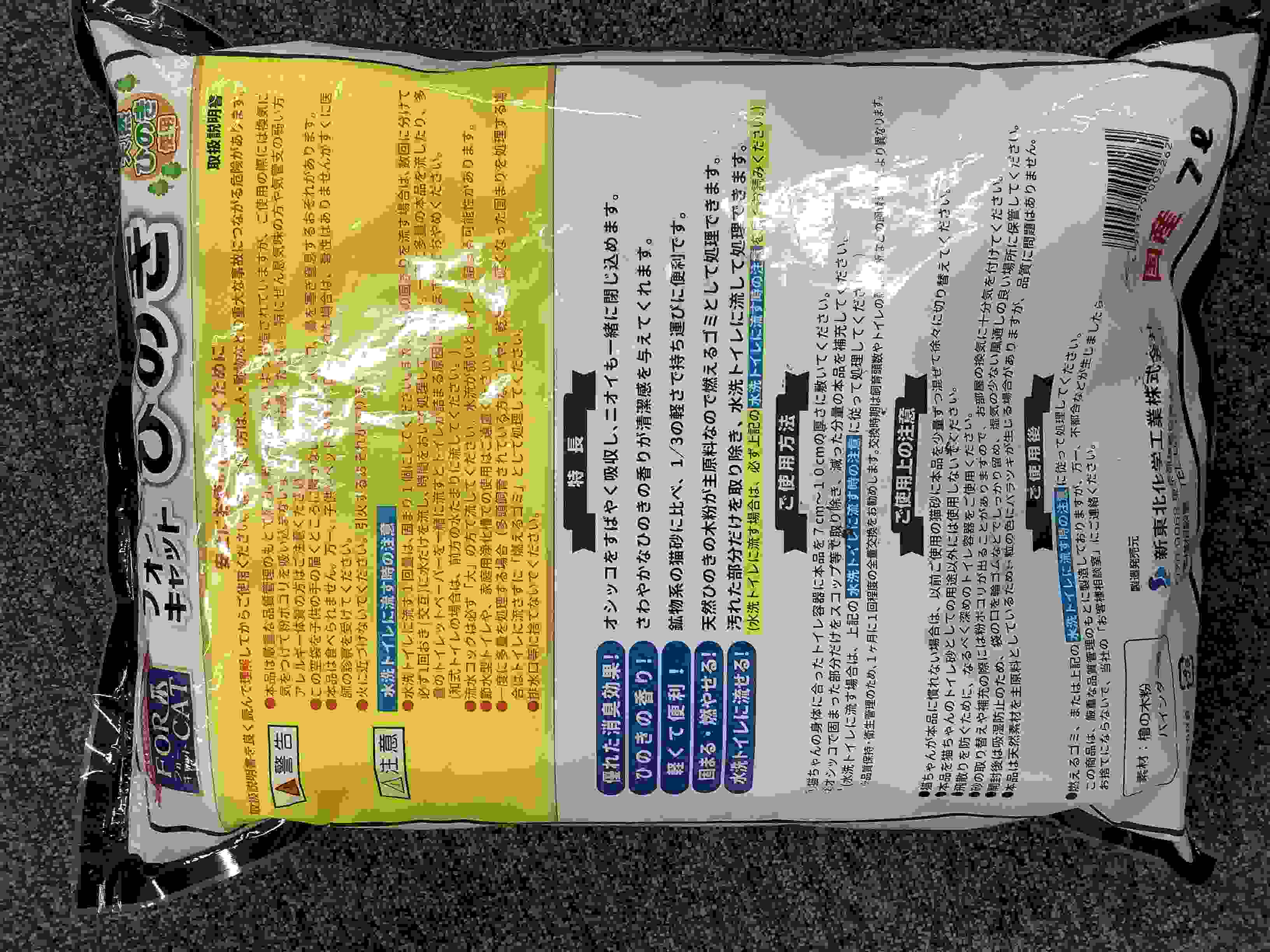 主原料に天然ひのきを使用した猫砂。