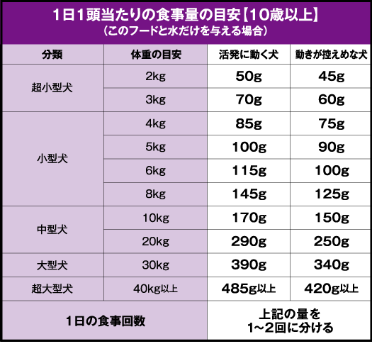 10歳以上の犬向けに設計しております。成犬用総合栄養食ですので1歳以上の犬に与えて問題ございませんが、長期給与は年齢に合ったフードをおすすめします。